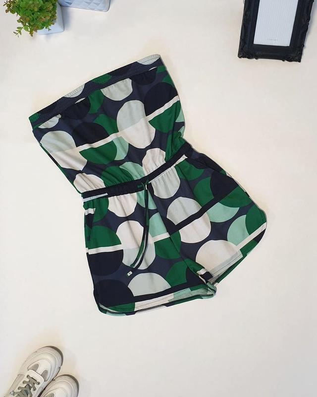 🔥Яскравий і стильний комбінезон-бандо. Тканина трикотажна, добре тягнеться, середньої щільності. Талія на резинці плюс затягується шнурком, шорти заокруглені, з разрезиками, є кишені🔥 💎Розмір 16 (2XL) 🔺️ПОГ 47 см (тягнеться до 57 см) 🔺️ПОТ 40 см (тягнеться до 55 см) 🔺️ПОБ 63 см 🔺️Довжина 68 см (Довжина від талії 39 см) 🔹️бирки зі складом немає , схоже на мінімум 50% cotton