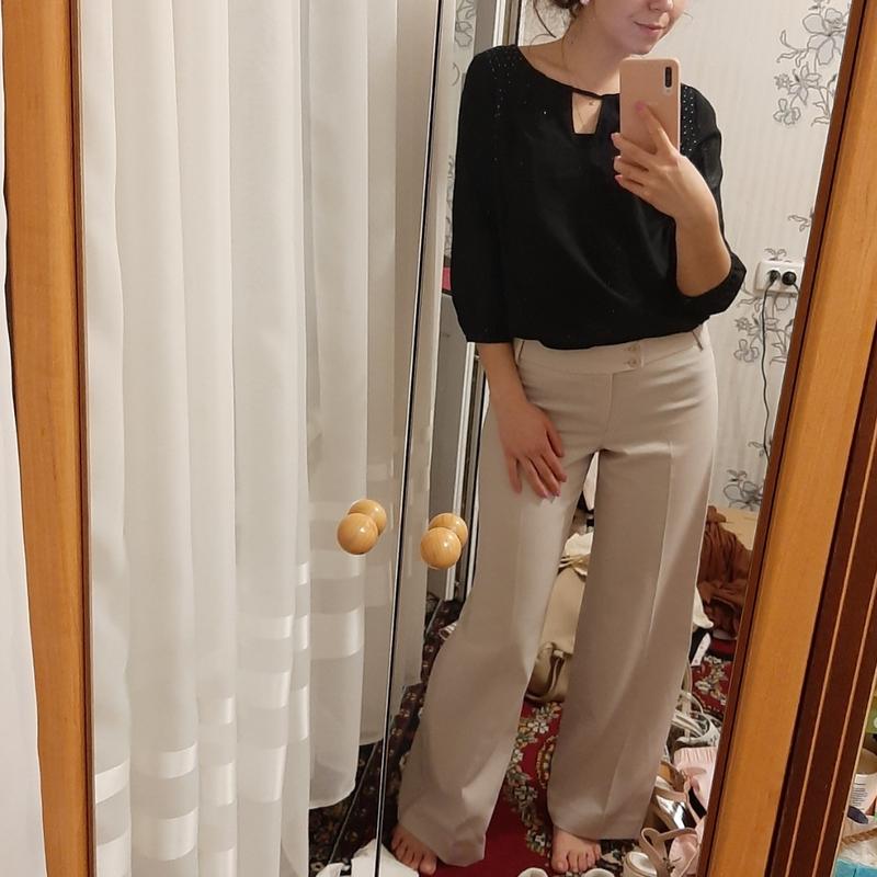 можна костюмом ціна за костюм можна окремо в наявності і те, і те 1) штани кльош-палаццо бренд Mango розмір S-M, 36-38 відмінні тримають форму і стрілки без прасування нюанс: малопомітне цятка 1 є 250 грн 2) сорочка чорна вживу краще ніж на фото натуральний матеріал матеріал бавовна не тягнеться бренд Orsay 42 розмір без нюансів 150 грн зростання моделі 166 см заходьте выюирайте питайте