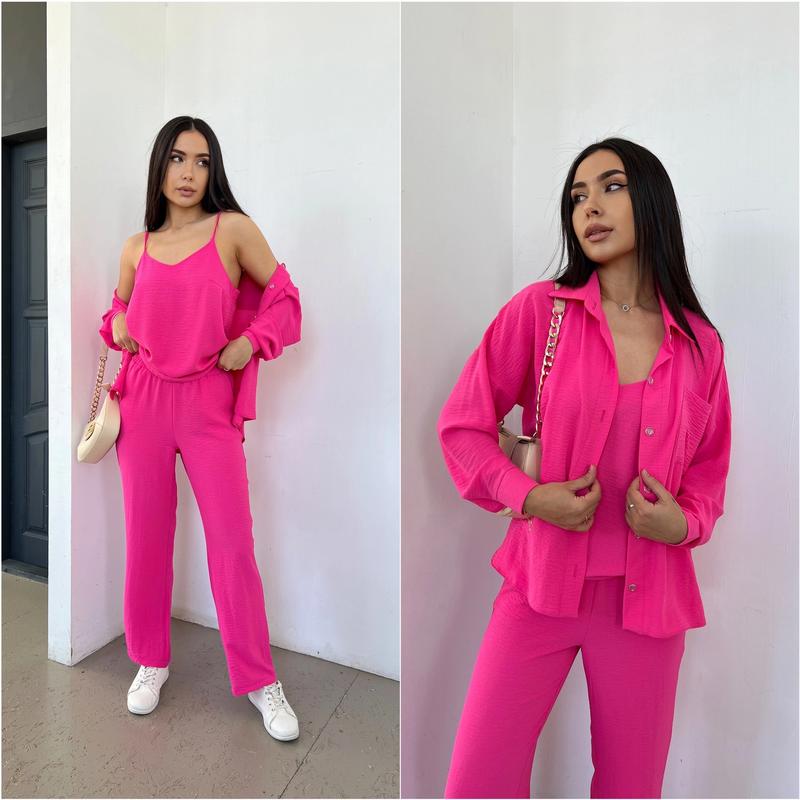 Костюм трійка. кольори: малина, синій, графіт, беж, мокко тканина: американський креп.