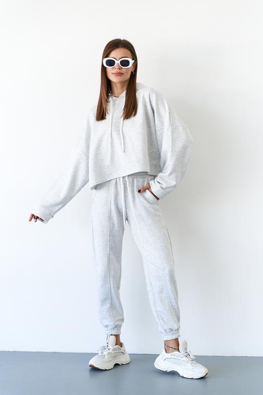 Стильний костюм укорочений вільний худі і штани, спортивний повсякденний костюм худі та дж...
