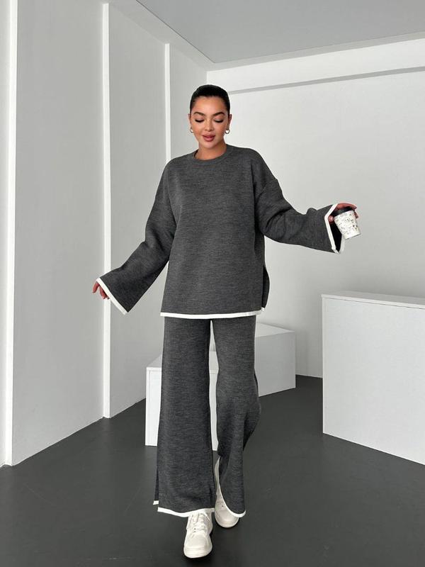 Костюм виконаний з трикотажного матеріалу. Модель крою oversize з джемпером та широкими брюками з високою посадкою на талії. Така річ легко поєднується з масивними черевиками чи кросівками, а поверх ви зможете накинути стильне пальто чи тренч, завершивши образ. • Колір: блакитний, серий, молочний, малина, чорний • Ціна 1499 грн Светр: • Довжина 65 см • ПОГ 58 см • Рукав від горл 69 см Штани: • ОТ 50-100 см • ОС 90-104 см • Довжина 105 см 2907