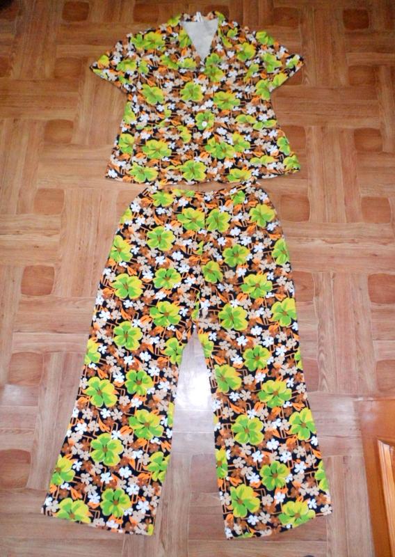 Літній жіночий брючний костюм у кольорах штани вільні кльош + блуза-піджак, гвинтаж чохосл...