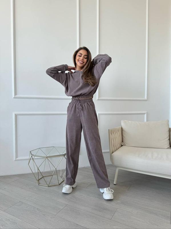 Костюм прогулянковий вельветовий/костюм спортивний/штани вільного крою та укорочена кофта/...