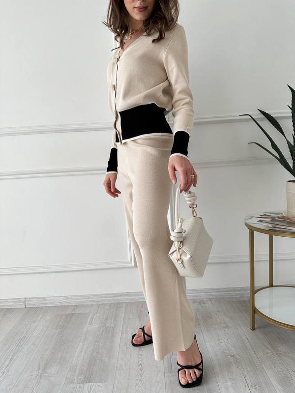 Шикарний трикотажний костюм у двох кольорах Прямі штани підкреслять ваші переваги Мод 2038 Розмір: універсал 42-46 Тканина: трикотаж Колір: оливка, айворі Ціна 1200грн