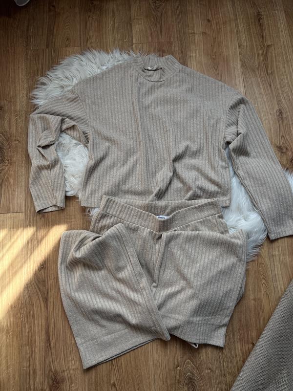 Дуже гарний трикотажний костюм Terranova Кофта йде по типу Over says Штани подовжені, широкі Кофта ПОГ. - 56см Довжина 52см Штани ПОТ - 41см ПОБ - 55см Довжина 112см