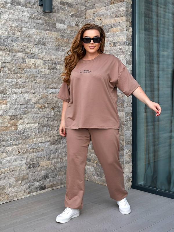 Спортивний свободный костюм у стилі OVERSIZE із двонитки пен‘є. Сезон: весна-літо Розміри: 48-50, 52-54, 56-60 💵 Ціна. 990 грн Параметри: ОГ кофти / ОС штанів: 48-50: ❗️ 52-54: ❗️ 56-60: ❗️ Довжина кофти / Ширина рукава де шов / довжина рукава від горловини: 48-50: ❗️ 52-54: ❗️ 56-60: ❗️ Довжина штанів зовнішнього/внутрішнього шва: 48-50: ❗️ 52-54: ❗️ 56-60: ❗️ Посадка штанів спереду/ззаду: 48-50: 52-54: 56-60: кольори: - мокко Тканина: двонитка гарної якості, добре тягнеться, Ідеально для весни-літа, не світиться, не скочується. Спортивний комфортний костюм. Кофта вільна, рукав спущений. Штани з високою посадкою на еластичній гумці, з кишенями в бічних швах, з високою посадкою, низ штанів на гумці. Є відео огляд