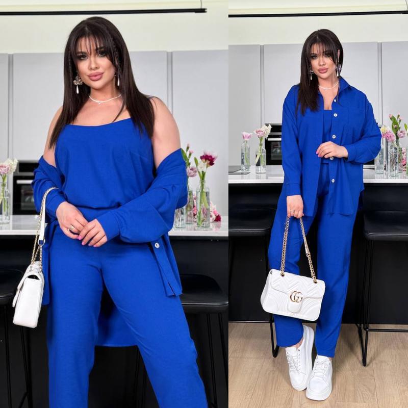 💙💛Створи свій образ. 💛💙 ✅Костюм повсякденний трійка. Сорочка+майка+брюки.Можна носити не тільки в комплекті, а й комбінуючи окремі елементи з іншими предметами. Для офісу та багатьох інших заходів необхідний свій стиль в одязі. Спеціально підібраний костюм якнайкраще виконує цю важливу роль. . ✅мод.294 ✅Розмір:50-52,54-56,58-60 ✅Тканина: льон польський. Тканина легка, м'яка, не просвічує. Вироби з даної тканини завжди виглядатимуть акуратно та красиво. ✅Колір:чорний,пляшка,пудра,червоний,синій,електрик. ✅💰😍Ціна: 920 грн 💰😍 💛💙💛💙Заміри💛💙💛💙 ‼️‼️заміри‼️‼️ ✅50-52 💥Сорочка О.Г-122., О.Б-124 Довжина-80/85 Рукав від горловини-80 💥Майка О.Г-116.,О.Б-124.,довжина від брили 💥брюки О.т(гумка)-78/112 О.Б-114 Довжина-105 ✅54-56 💥Сорочка О.Г-132.,О.Б-134 Довжина -82/87 Рукав-80 💥майка О.Г-124 О.б-132 Довжина від брителів-57 💥брюки О.Т(резинка)-82/120 О.Б-124 Довжина 104 ✅58-60 💥Сорочка О.Г-144., О.Б-146 Довжина-85/90 Рукав від горловини -81. 💥Майка О.Г-132.,О.Б-140.,від брителів-59 💥Брюки О.Т(резинка)-88/126 О.Б-134 Довжина -105