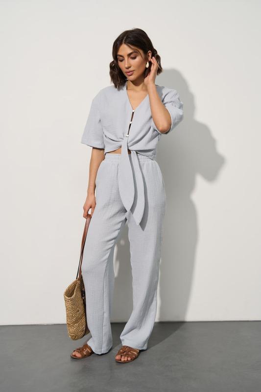 Є післяплата та обмін Сорочка на гудзиках та на зав’язках з укороченим рукавом 3/4 Штани вільного крою прямі, з бічними кишенями, талія на еластичній резинці ▪️ Тканина: муслін ▪️ Склад тканини: 100% бавовна ▪️ Прямий крій, еластична резинка, якісна фурнітура ▪️Розміри: S, M, L ▪️ Догляд: делікатний режим до 40"С , перше прання обов'язкове, прасувати тканину потрібно поки вона ще волога або додатково пройтись парою для збереження м'якості тканини 6642003