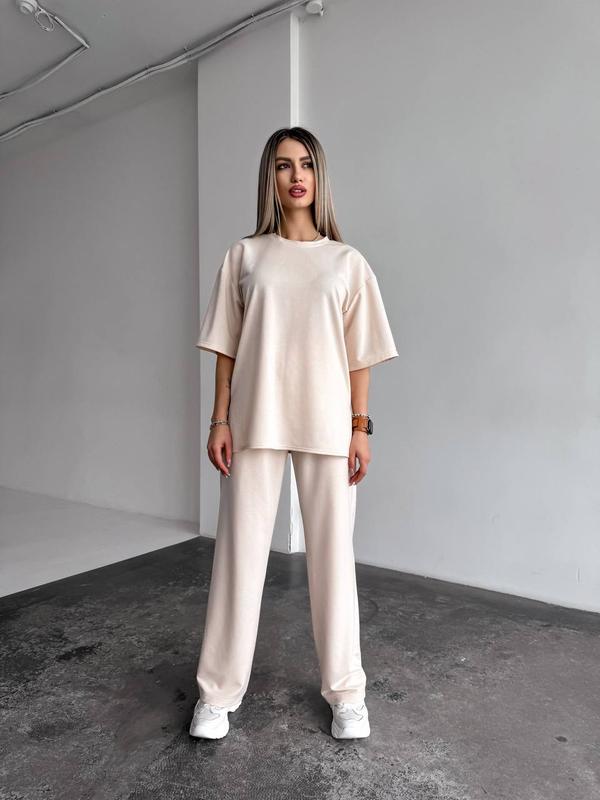 Базовий повсякденний костюм, футболка + прямі штани , якісна натуральна тканина