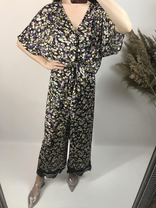 Шовковий літній костюм в квітковий принт, брючний костюм