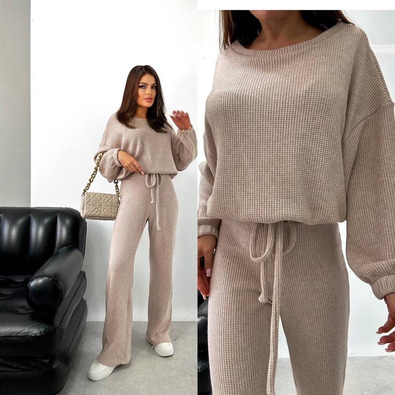▪️ матеріал: в’язка (виробництво: Туреччина), добре тягнеться та приємна на дотик. ▪️ колір: бежевий, чорний, сірий ▪️ розміри: S, M, L, XL Орієнтовні заміри по готовому виробу: 42 (S) Светр: ОГ – від 82 см, ОТ – від 62 см, д рукава по внутрішньому шву: 38 см, д виробу по спинці: 52 см. Брюки: ОТ: 62-69 см, ОБ: 86-94 см, д виробу по шаговому шву: 82 см, д виробу по боковому шву: 113 см. 44 (М) Светр: ОГ – від 86 см, ОТ – від 66 см, д рукава по внутрішньому шву: 38 см, д виробу по спинці: 54 см. Брюки: ОТ: 66-71 см, ОБ: 90-98 см, д виробу по шаговому шву: 82 см, д виробу по боковому шву: 114 см. 46 (L) Светр: ОГ – від 90 см, ОТ – від 70 см, д рукава по внутрішньому шву: 38 см, д виробу по спинці: 54 см. Брюки: ОТ: 70-77 см, ОБ: 94-102 см, д виробу по шаговому шву: 82 см, д виробу по боковому шву: 115 см. 48 (XL) Светр: ОГ – від 94 см, ОТ – від 74 см, д рукава по внутрішньому шву: 38 см, д виробу по спинці: 55 см. Брюки: ОТ: 74-81 см, ОБ: 99-106 см, д виробу по шаговому шву: 82 см, д виробу по боковому шву: 115 см. 45767, 45754, 45752