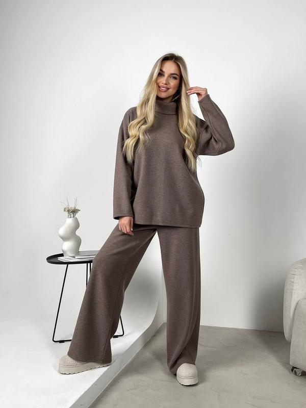 Якісний ангоровий костюм оверсайз светр і широкі штани палаццо жіночий комплект теплий