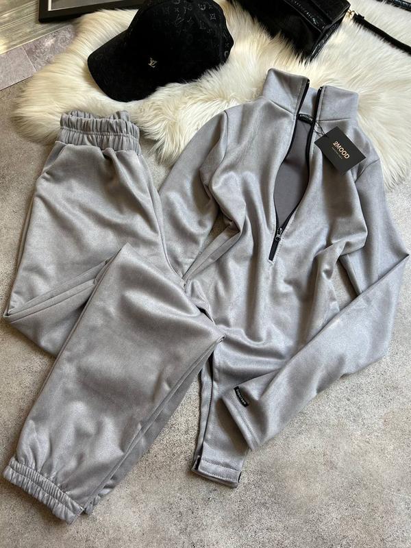 New🩶 2MOOD Костюм (боді + джогери) Реальні фото🔴 🔘Мод 1027 🔘Розміри - 42-44, 46-48 🔘Кольори - чорний, бежевий, графіт 🔘Тканина - замш на дайвінге 🔘Ціна 885 грн Костюм з двох необхідних речей по сезону. Мʼяка приємна тканина, трохи тягнеться, сідає по фігурці. Боді на змійці, з дірочками для пальчиків. Джогери з високою посадкою та шнурком, як на фото.