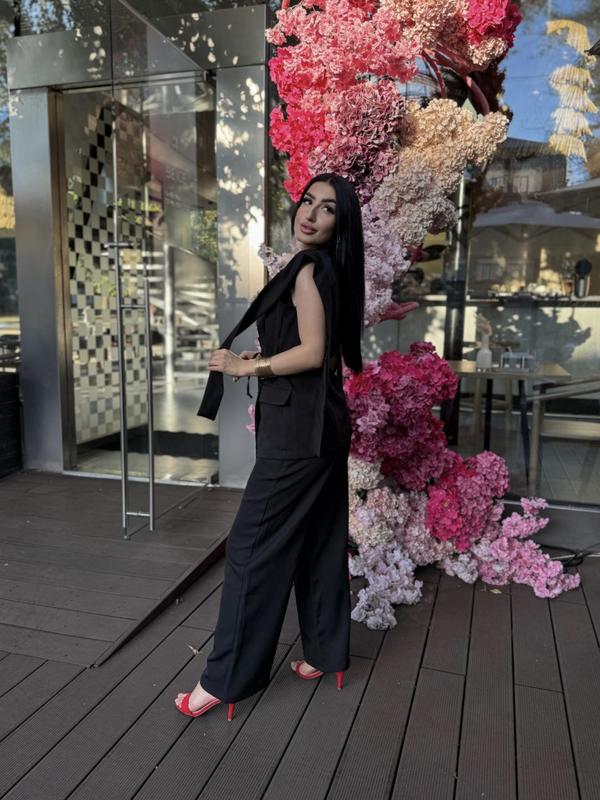Трендовий костюм в фасоні 👉OVERSIZE (жакет та штани палаццо) 👉Мод.483 🖍️ Тканина костюмна преміум класу 🖍️Колір : чорний,беж та червоний 🖍️ Розмір:42-44 46-48 👉 Ціна 1049 грн ✔️Довжина жакету 42-44 75см 46-48 77см Йде с плечіками ✔️Довжина штанів 102/76 Пояс йде на гумці с карманами На фото розмір костюму 46-48 ✔️ параметри моделі Зріст 165 Груди 90 Талія73 Стегна 99