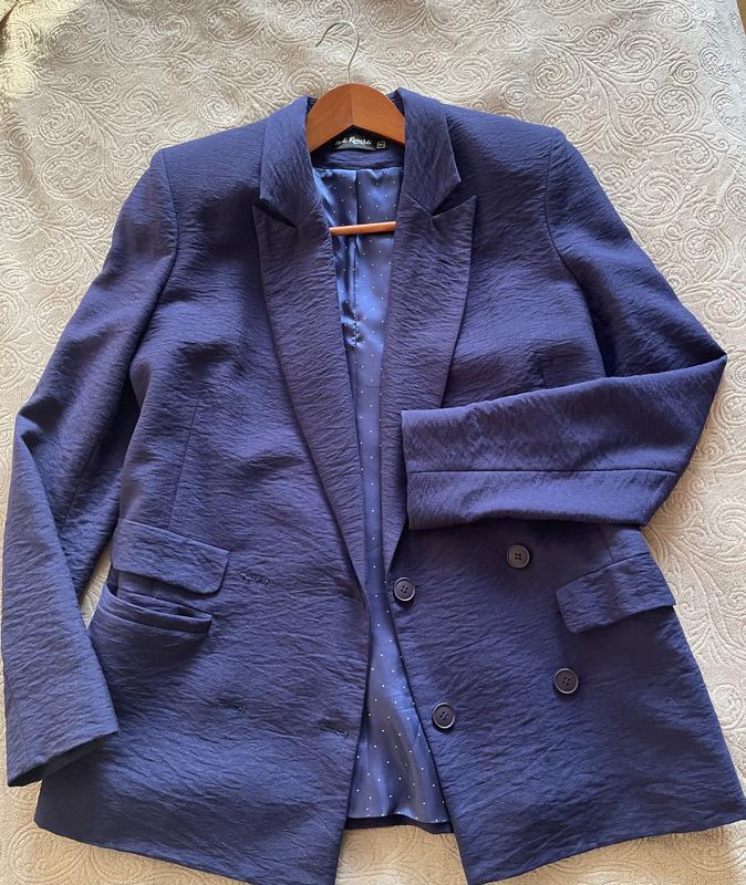 Костюм жіночий лляний від українського дизайнера, дуже гарного синього кольору, шовковий підклад, в ідеальному стані, практично не носився. Піджак двобортний, з кишенями, брюки також з кишенями, верх на резинці. Розмір S-М.