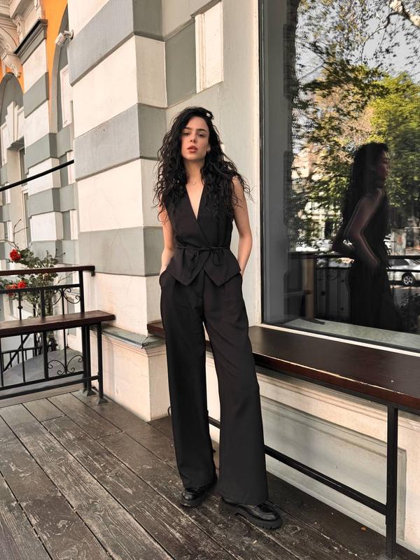 НОВИНКА 😍 Та сама класика ,яка точно має бути у кожної 💔 Штани палаццо які візуально подовжують ніжки та жилет з пояском ,який ідеально підкреслює талію та створює силует пісочний годинник ⌛️😍 Фото реал Арт. 07 Ціна: 1300 грн Розмір: с-м,м-л Колір : чорний ,графіт Тканина : костюмка, жилет без підкладки ЗАМІРИ : С-М / М-Л Талія 62-65 см / 66-72 см Стегна 92-96 см/ 95-105 см Довжина штанів 110 см Довжина внутрішнього шву 80 см Довжина жилету спереду 56 см Довжина жилету по спинці 49 см Груди до 98 см