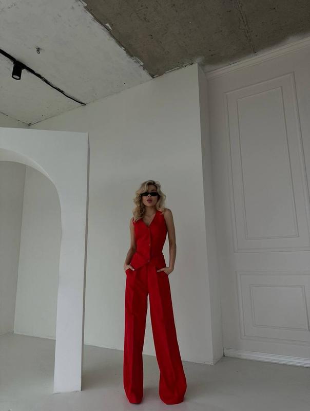 Модель 5433 Жіночий трендовий костюм Розмірний ряд S,M,L,XL Тканина костюмна Комплект складається з жилетки, яка застібається на ґудзики та брюк Кольори чорний, білий, червоний, беж та шоколад Супер якість Ціна 759 грн