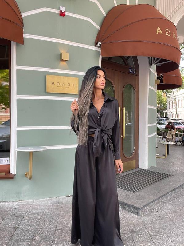 🔝🔝🔝🔝🔝🔝🔝 🔝🔝🔝🔝🔝🔝🔝 🦋🦋🦋🦋🦋🦋🦋 🆕Костюм 🆕 Штани + сорочка з поясом 👍Ціна: 1000 грн Мод 838 ✅Розмір: 42-44; 46-48 ✅Колір: шоколад, чорний 🪡Тканини: шовк Армані домі