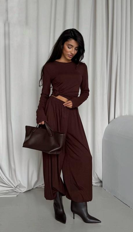 🖤NEW 🖤Костюм ▪️мод 450 ▪️тканина: віскоза ▪️колір : чорний , шоколад ▪️розмір: SM /ML ▪️629грн Довжина штанів 110 см | Розмір SM | Обхват грудей: 82-88см Обхват таліі :60-65см Обхват Стегон : 88-94см |Розмір ML | Обхват грудей: 85-93см Обхват талії : 65-72 см Обхват стегон : 95-100 см