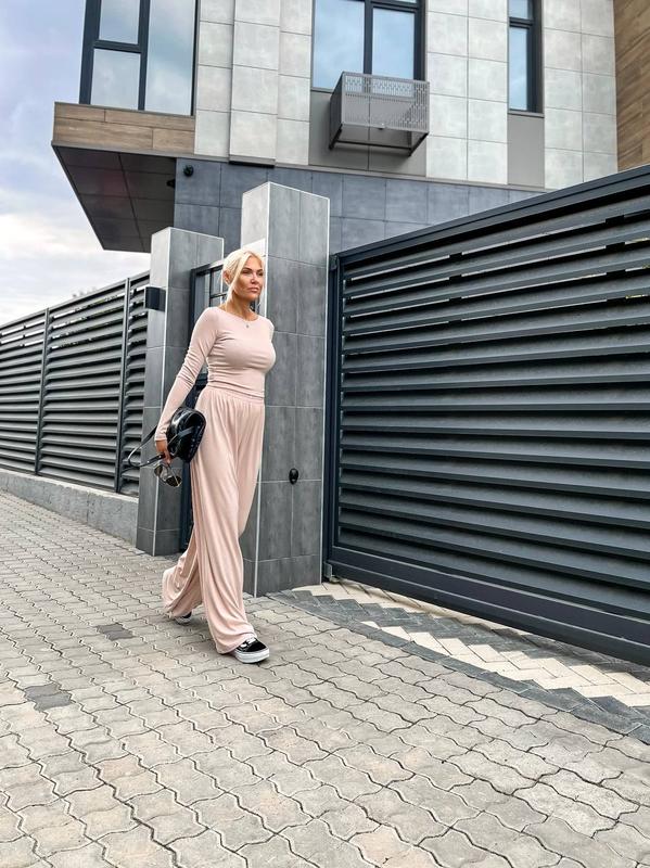 ✨ Стильний жіночий костюм – елегантність та комфорт в одному образі! ✨ Мод 2123 Фото Реал Тканина: турецька віскоза Джерсі Колір: чорний, беж, шоколад Розмір універсальний (42-46) Штани довжина 115 см Талія 68 см на резинці Стегна 120 см Лонг довжина 43 см Груди 86 см Рукав 70 см