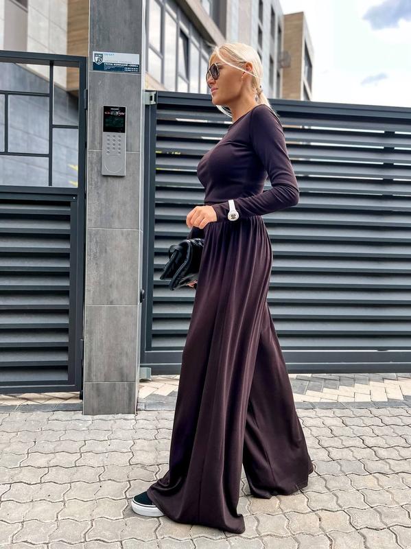 ✨ Стильний жіночий костюм – елегантність та комфорт в одному образі! ✨ Мод 2123 Фото Реал Тканина: турецька віскоза Джерсі Колір: чорний, беж, шоколад Розмір універсальний (42-46) Штани довжина 115 см Талія 68 см на резинці Стегна 120 см Лонг довжина 43 см Груди 86 см Рукав 70 см