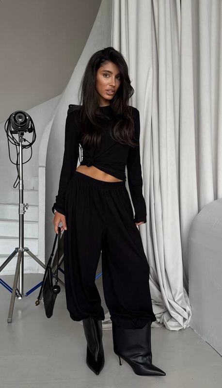 Костюм ▪️тканина: віскоза ▪️колір : чорний , шоколад ▪️розмір: SM /ML Довжина штанів 110 см | Розмір SM | Обхват грудей: 82-88см Обхват таліі :60-65см Обхват Стегон : 88-94см |Розмір ML | Обхват грудей: 85-93см Обхват талії : 65-72 см Обхват стегон : 95-100 см