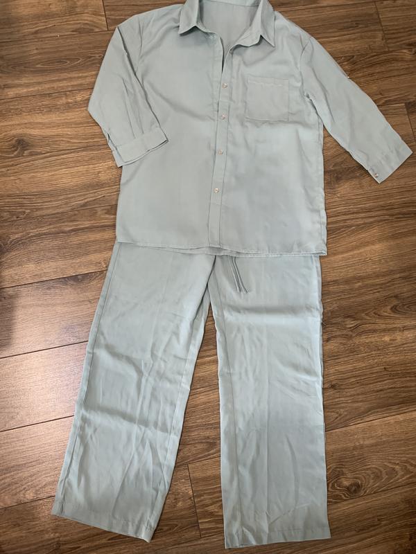 Новий брючний костюм Рубашка: довжина 73см ширина під руками 52см рукав 43см Штани: довжина 101см пояс 34см(тянеться)