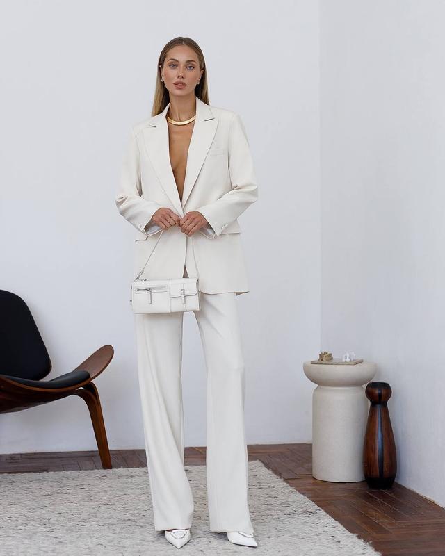 Новинка 🔥 Костюм-двійка Арт. 547 Стильний та універсальний костюм із костюмної креп діагоналі преміум класу. Чіткий крій, якісний підклад і продумані пропорції роблять модель ідеальною як для повсякденних образів, так і для більш офіційних виходів. ▪️ Забарвлення: чорний, кремовий (світлий), мокко, пудровий, шоколадний ▪️ Нові кольори: гірчичний зі смужкою, пудровий зі смужкою ▪️ Розміри: xs, s, m, l, xl, xxl ▪️ Тканина: костюмна креп діагональ преміум класу ▪️ Підклад: щільний, якісний ▪️ Довжина брюк: 114 см (кроковий — 88 см) ▪️ Довжина піджака по спинці: 75 см ▪️ Довжина рукава: 61 см ▪️ Ціна: 4650 грн Костюм, який працює на ваш стиль щодня ✨
