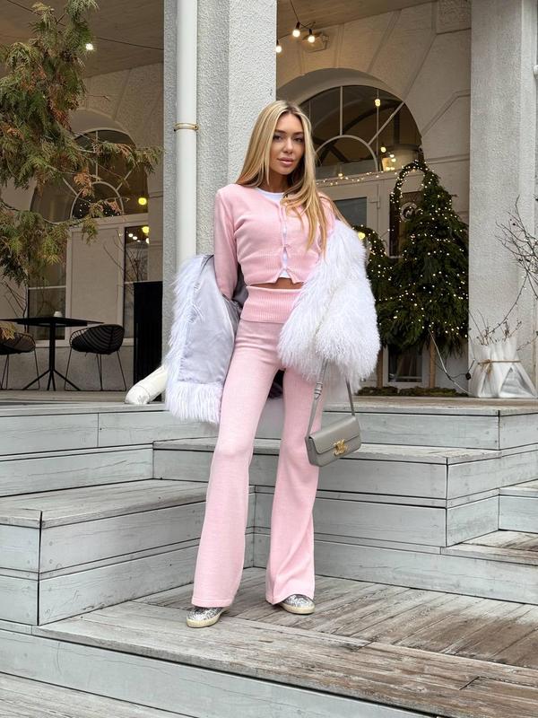 Довгоочікувана новинка ❤️ Комплект трикотажний Модель: 2604 Матеріал: високоякісна пряжа (60% віскоза, 40% поліамід) Розміри: XS, S, M Кольори: зефір-барбі, чорний, шоколад, молочний Ціна: 3500 грн Фото: Реал Опис: Комплект із кардиганом на ґудзиках і штанами-кльош красиво підкреслює фігуру та виглядає дуже елегантно. М’який, приємний до тіла матеріал дарує комфорт і підходить як для прогулянок, так і для стильних виходів.