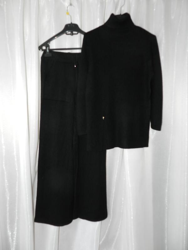шикарний в'язаний костюм, кофта - светр з високою горловиною довжина нижче стегна і штани штани кюлоти кюлотами кльош з кишенями розмір єдиного відмінно тягнеться , бирок зі складом немає, производитель на коробке с ростовкой указывает что кашемир замеры**** свитер плечи 38 см от шва до шва пог 48 см тянется на 83 см поб 51 см тянется на 93 см длинна по спинке 68 см длина рукава от плечевого шва 53 см длинна рукава по внутреннему шву 35 см брюки пот 31 см тянется на 53 см резинка+кулиска поб 52 см тянется на 90 см длина штанов по внешнему шву 98 см шаг 69 см посадка спереди 34 см сзади 38 см допускаю погрешность в замерах +-2 см ( но это не существенно так как тянется отлично