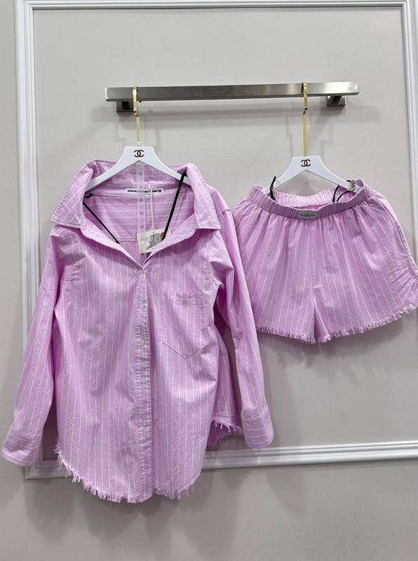 Костюм в стилі wang сорочка подовжена шорти в смужку розовий