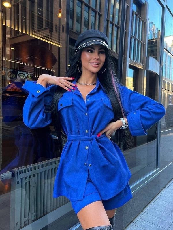 Мод. 1655 Костюм. ✔️Розміри - 42-44, 44-46 ✔️Тканина - Замш на дайвінгу, виробництва Туреччина 🇹🇷 Кольори: барбі, блакитний, електрик, сірий