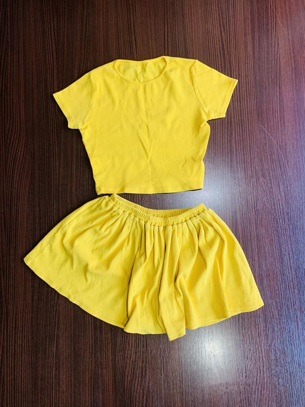 Літній комплект для дівчаток, ярко лимонного кольору, розмір XS, шорти-спідниця