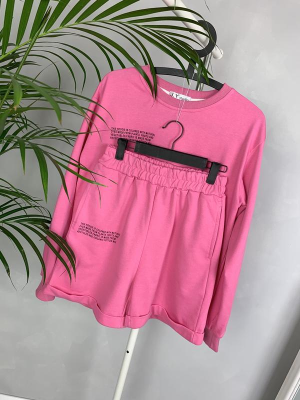 М'який трикотаж-бавовна/Турецька двунить-затишна і приємна до тіла!❤️ Шорти вільного крою на високій посадці. Вир.Туреччина. Відмінна якість! На 44-46 розмір ✅Шорти бермуди. Довжина 44 ,Пояс 32+ На резинці ,под 54 ,Посадка 36 ✅Світшот -вільний крій. Довжина 65 ,Пог 57 ,Рукав 60 Плечі спущені 53