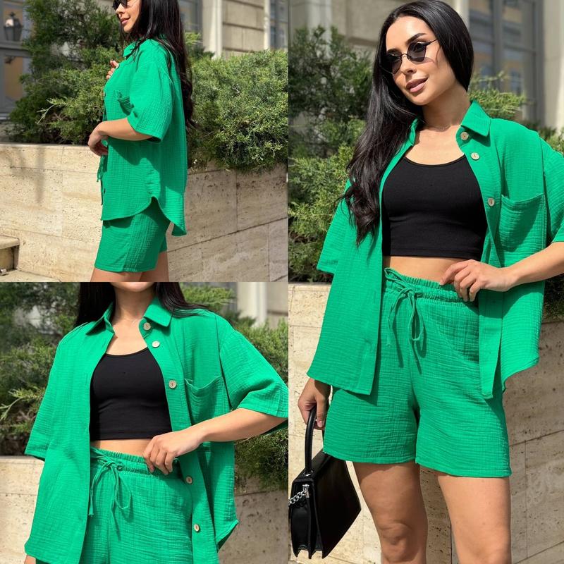 Костюм мод 211 Ціна 750 грн Розміри 42-44 46-48 50-52 Матеріал муслін Кольори малина, трава, джинс Сорочка на ґудзиках
