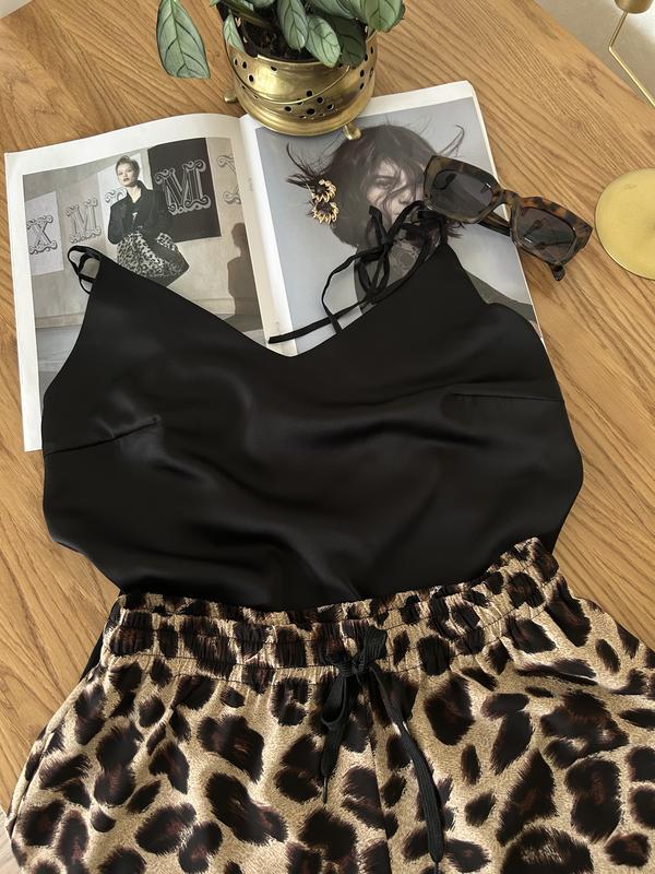 Стильний комплект майка чорна на бретелях(550), шорти принт плеопард , є кишені приємна тканина майже не мнеться.(700)