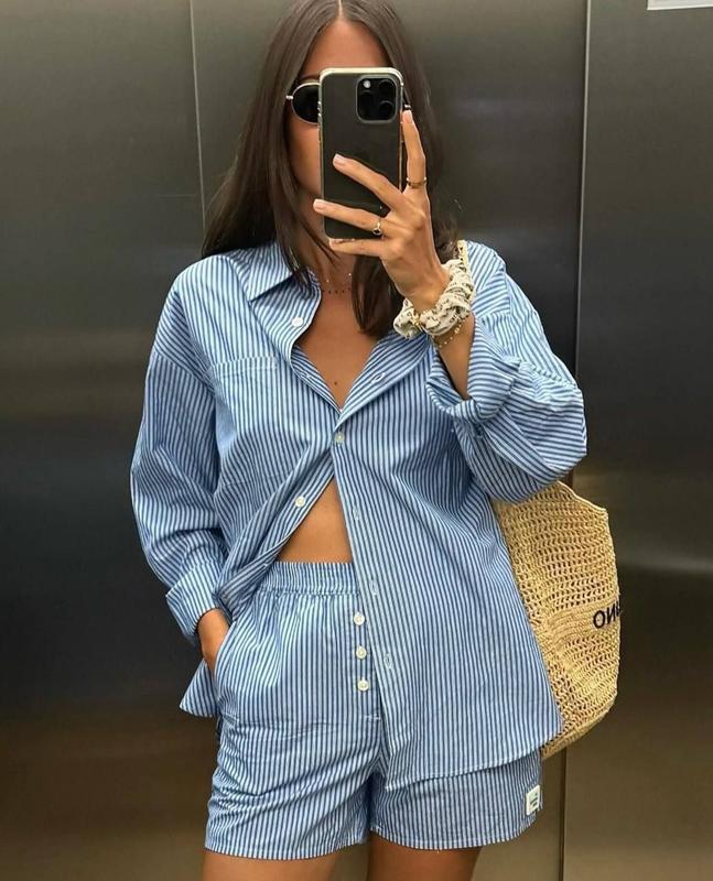Костюм Мод 690/55 Розмір: універсал (42-46) Колір: білий в блакитну смужку Тканина: софт Ціна: 850 грн