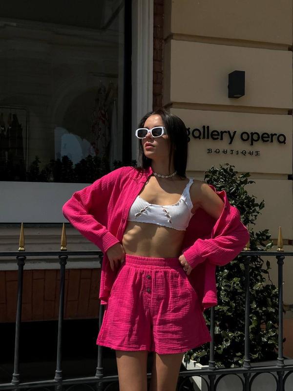 Костюм 🤍 В НАЯВНОСТІ ✨ Код 252 🔹Тканина: муслін 🔹Колір: малина, блакитний, білий 🔹Розмір: 42-46 (onesize) 💸Ціна 800 грн Літній костюм із мусліну можна носити як разом, так і окремо 🤍 Залежно від настрою та ситуації, ви можете комбінувати сорочку та шорти з іншим одягом, створюючи різні образи та змінюючи свій стиль ✨