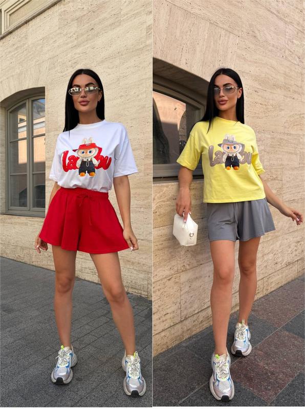 Літній костюм лабубу labubu футболка та шорти-спідниця розклешені