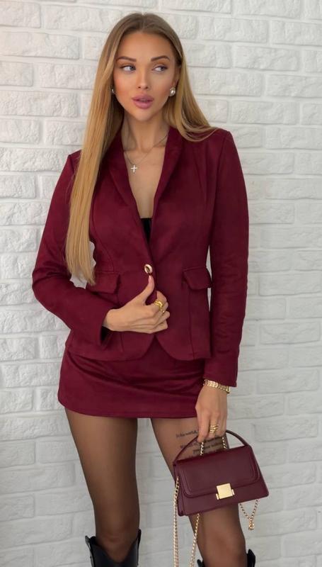 Стильний костюмчик з мягенької тканини, фото реал✅ ⠀ ▫️розміри: ХС-С, М-Л( розм сітка на фото) ▫️тканина: замш на трикотажі, щільна ▫️кольори: чорний, бордо, смарагд, шоколад ⠀ Костюм складається, з піджака та спідниця-шортики, дуже приємна тканина, цікавий крій - комірець можна загибати як на відео, і також можна носити в стійці, що робить ваш стиль оригінальним і цікавим, кишені в піджаку робочі, з плечиками. Спідниця має збоку потаємну блискавку. ⠀ Модель 500 ‼️Безопасної оплати немає ,є накладний платіж з передплатою‼️ Відправка 2-4дні Є обмін розміру