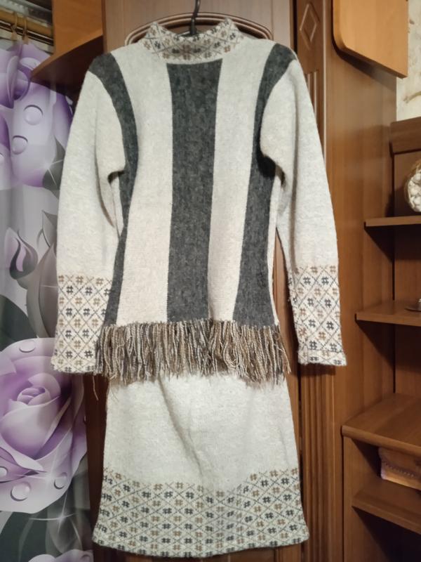 Кофта: ПОГ 42 тягнеться до 52, Спідниця: ПОТ 33 тягнеться до 42, ПОС 47 тягнеться до 57, довжина 55см