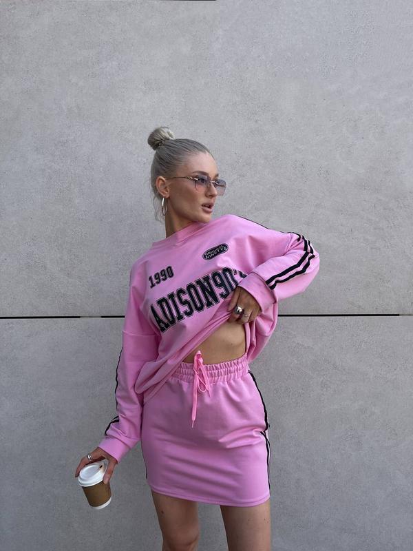 Костюм Мод: 1513-413 ▪️Розмір: 42-46 ▪️Тканина: двухнитка пеньє Туреччина, 95% бавовна, 5 % поліестер ▪️Колір: рожевий, сірий, чорний