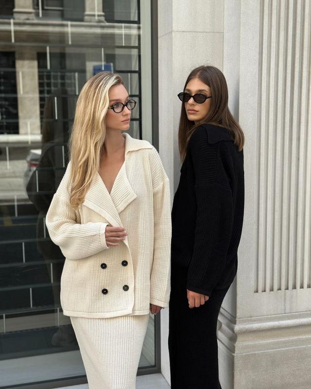 Костюм жіночий (кардиган+спідниця) Модель 24135 Склад: 70% AKRILIK, 30% KOTON Розмір єдиний Кардиган: ОГ 130 см, довжина рукава від коміра 72 см Довжина по спинці 76 см Спідниця: ОТ 58-106 см, ОС 104-126 см, довжина 96 см
