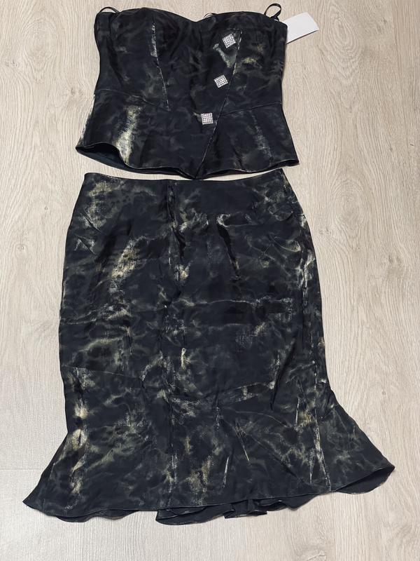 Дивіться дати відправлення на сторінці « про МЕНЕ» Новий з біркою Розмір 12 Бірки зі складом немає Але дуже схоже на шовк Пог 41 Пот 34 Пос 46 Довжина збоку 28 Попереду 36 Спідниця 37 см пот 50см пос 58 см довжина Є ньюанс- фото, зовсім непомітно, немає одного камінчика