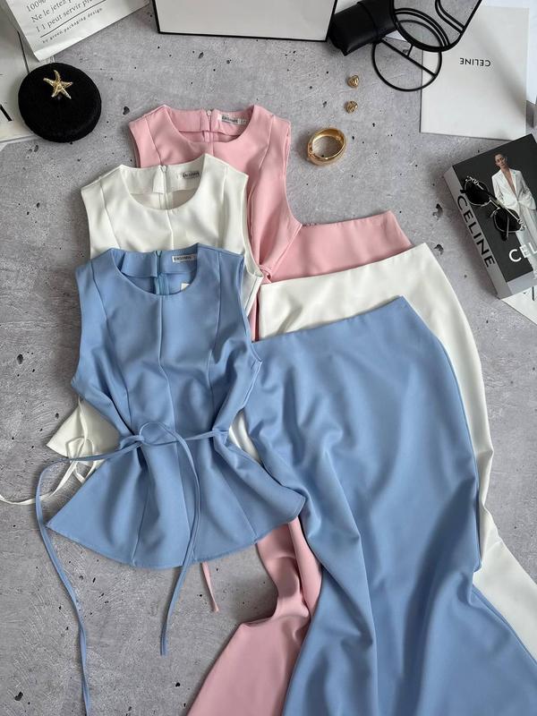 Прогулянковий костюм зі спідницею блакитний костюм жовтий костюм пудра