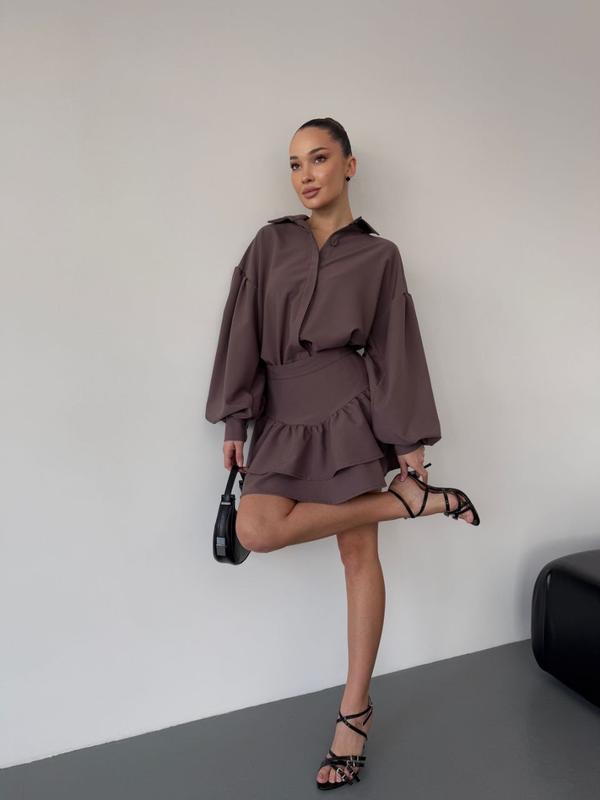 Костюм зі спідницею бохо шоколадний костюм зі спідницею мокко