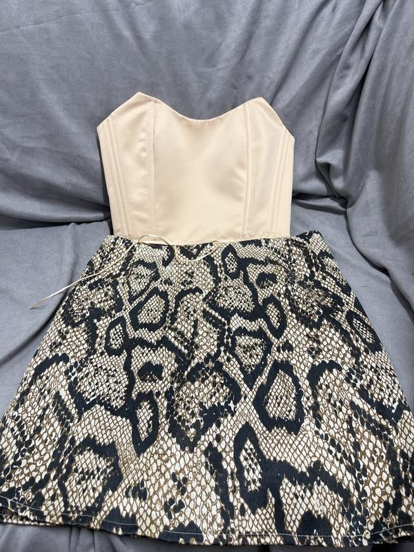 Щойно зшитий комплект спідниця + корсет , підійде на розмір S також на М . Спідничка тягнеться , а корсет регулюється за рахунок шнурівки . Заміри по корсету: ОГ - 75-90 ОТ - 60-70 Спідничка ОС-86 і тягнеться до 108 см