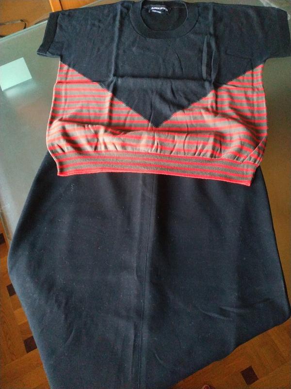 Бавовна 100%. Блуза цельнокроенная. поєднання кольорів чорний, червоний, коричневий. Спідниця чотирьох клинка пряма. ззаду маленькі кишені. на блискавці. Оригінальний Sonia Rykel