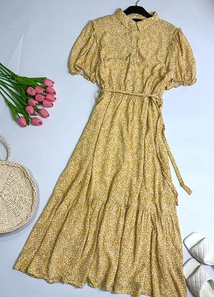 Класична легка сукня міді з гумкою на талії, плаття квіти, платье миди