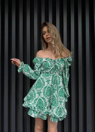 Нереально красивое принтованное мини платье,черный,зеленый,голубой на резинке с завязками